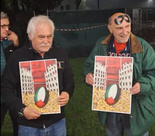 Our "resident artist" Andrea Carvelli, haka Roma, produced the masterpiece that the winner is to put up for grabs next year and a special award for each team, for the medics, the refs and for the two eldest players, one of them proudly over 70 and in purple shorts.
